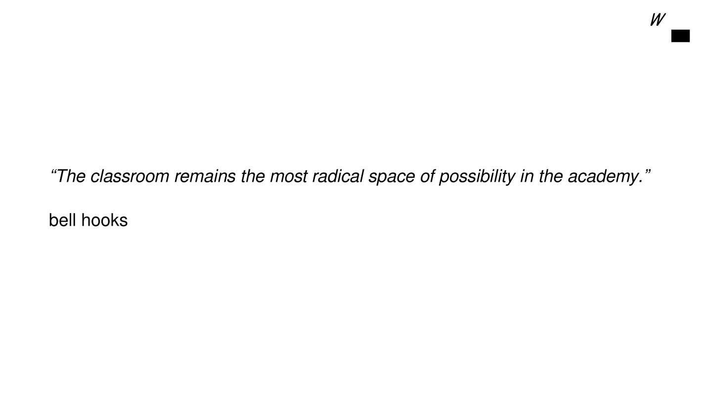 “The classroom remains the most radical space of possibility in the academy.” (bell hooks)