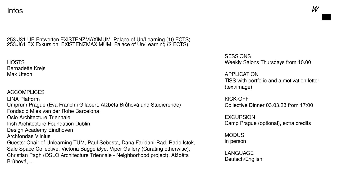 EXISTENZMAXIMUM Palace of Un/Learning