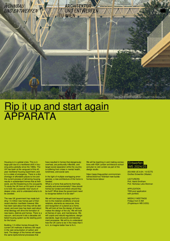 We will look beyond typology and function to the material conditions of social relations, elements as resources, time, and recognition of a planet as a home. We will look at how the design of homes makes the design of the city. We will look at themes of care, and maintenance. We will unpick and rebuild regulations, design standards, legal structures and development processes. We will try to understand how the UK came to be in the mess that it is in, to imagine better how to fix it.