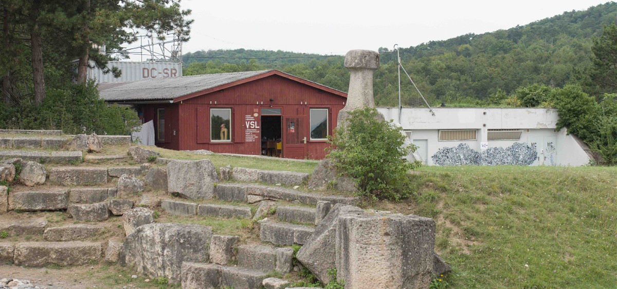 Eingebettet in den weitläufigen Skulpturen- und Landschaftspark dient eine alte Holzbaracke als Sitz des Vereins Symposion Lindabrunn. Das stark sanierungs- und adaptierungsbedürftige Gebäude bietet neben einem Ausstellungsraum auch eine große Küche sowie Schlafräumlichkeiten für bis zu 10 Personen. Erweitert wird das Raumangebot durch temporäre Strukturen wie Flugdächer und Container, die an das Gebäude andocken, und als Werkstätten und Veranstaltungsflächen dienen.