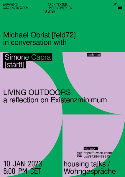 Michael Obrist [feld72] in conversation with Simone Capra [startt] about "LIVING OUTDOORS – a reflection on Existenzminimum"